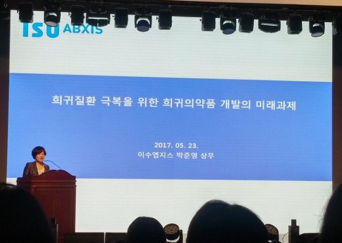 <사진. 이수앱지스 사업본부 박준영 상무가 '희귀질환 극복을 위한 희귀의약품